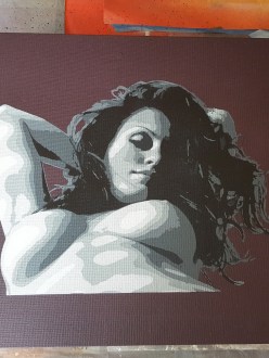 9 layer stencil on canvas board – (16 x 20 inch)